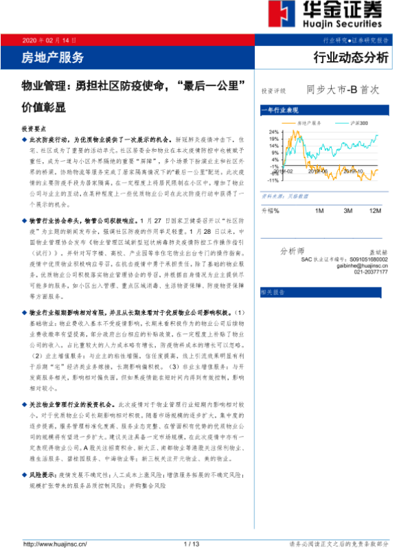 【华金证券】【20200214】物业管理:勇担社区防疫使命,“最后一公里”价值彰显-13页 行业研究