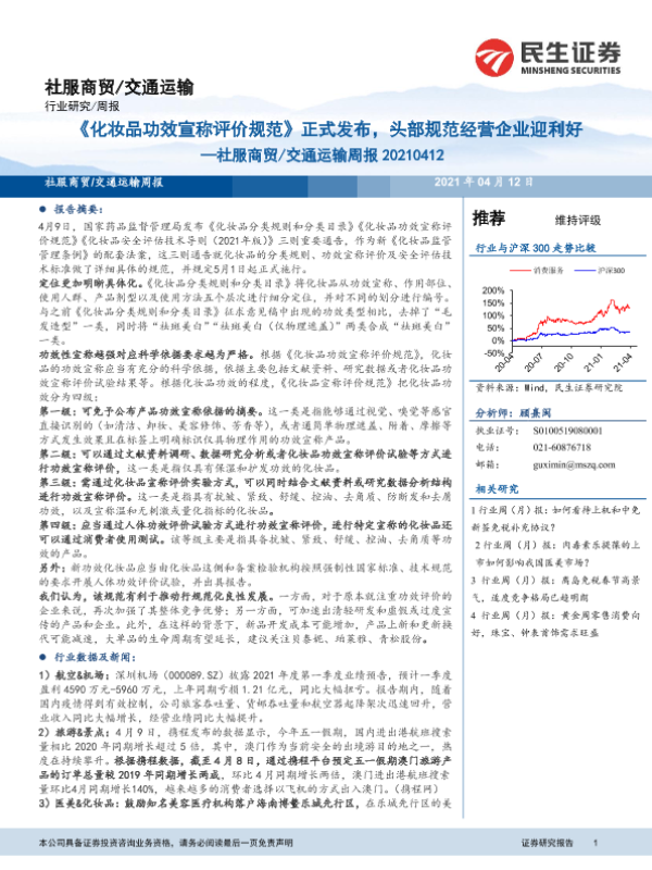 【民生证券】【20210412】《化妆品功效宣称评价规范》正式发布,头部规范经营企业迎利好-12页 行业研究