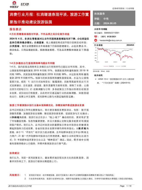 【五矿证券】【20240605】消费行业月报:社消增速表现平淡,旅游工作重要指示推动建设旅游强国-16页 行业研究