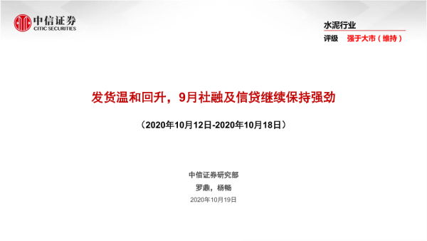 【中信证券】【20201019】水泥行业:发货温和回升,9月社融及信贷继续保持强劲-39页 行业研究