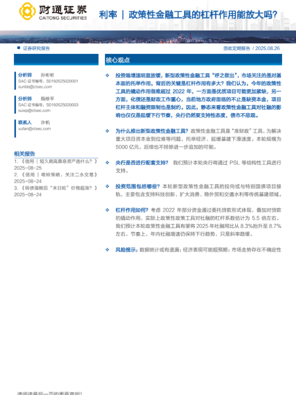 【财通证券】【202508】利率|政策性金融工具的杠杆作用能放大吗?-10页 证券期货研究报告