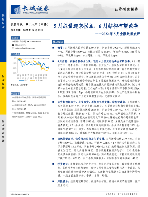 【国盛证券】【20220612】银行本周聚焦:5月社融总量回升,但中长期需求仍待改善-14页 行业研究