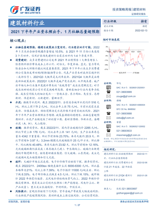 【广发证券】【20220213】20220213-广发证券-建筑材料行业投资策略周报-27页 行业研究