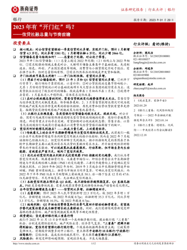 【浙商证券】【20230129】信贷社融总量与节奏前瞻:2023年有“开门红”吗?-12页 行业研究
