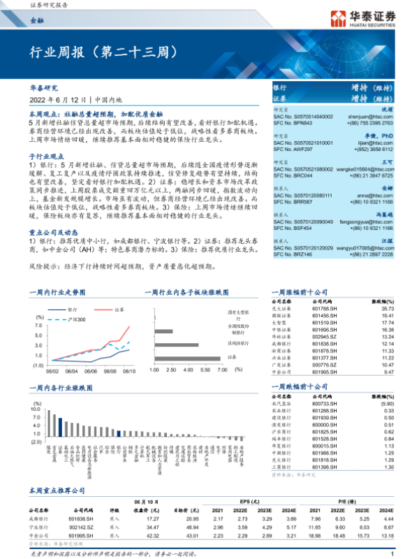 【华泰证券】【20220612】金融行业周报(第二十三周)-24页 行业研究