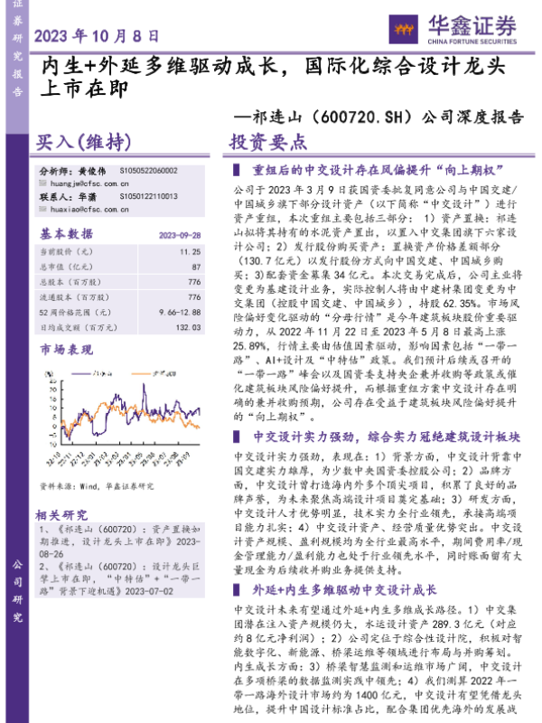 【华鑫证券】【20231008】20231008-华鑫证券-祁连山-600720.SH-公司深度报告:内生+外延多维驱动成长,国际化综合设计龙头上市在即-25页 行业研究
