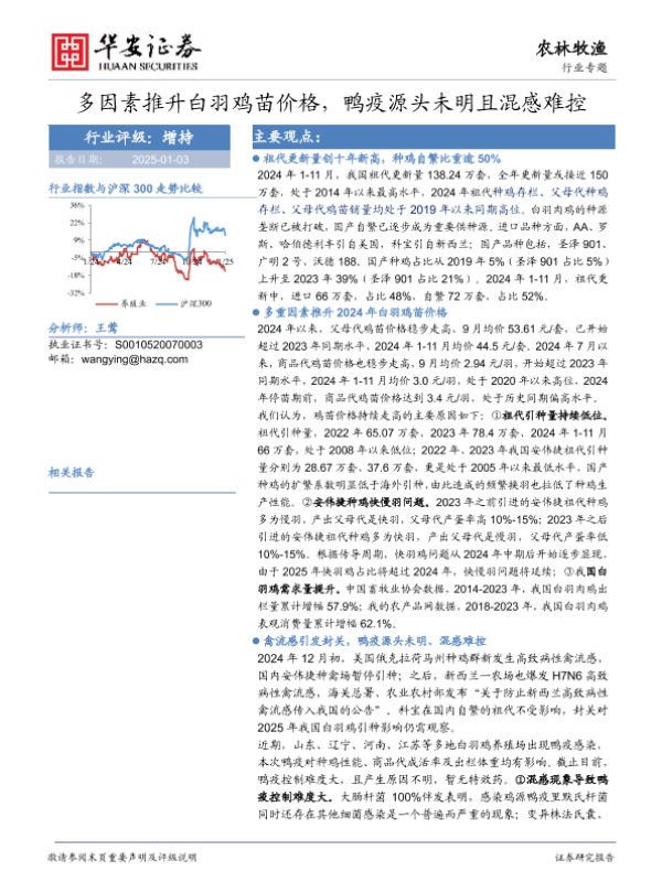 【华安证券】【20250103】多因素推升白羽鸡苗价格,鸭疫源头未明且混感难控-15页 行业研究
