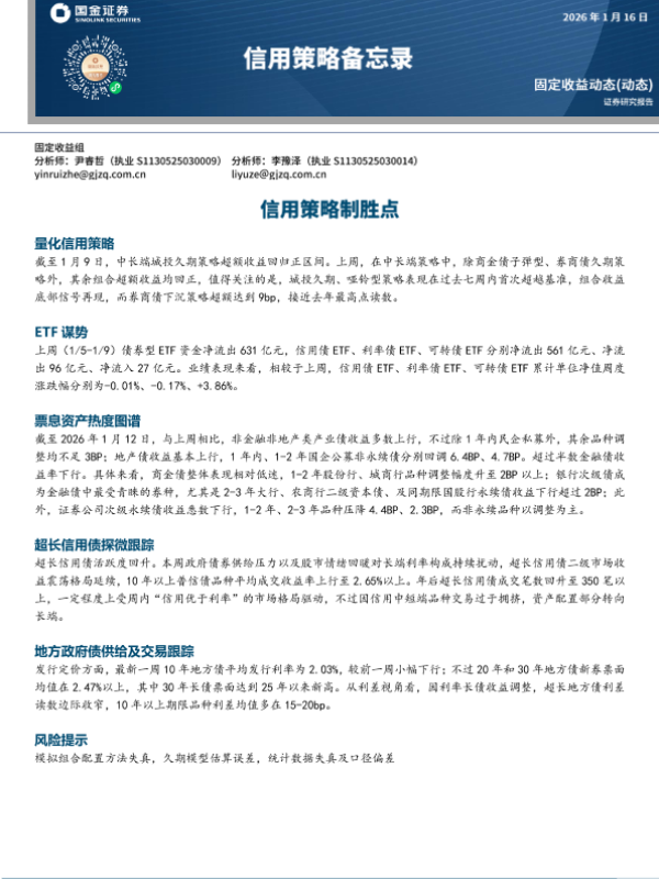 【国金证券】【202601】信用策略备忘录_票息策略强势之际-6页 证券期货研究报告
