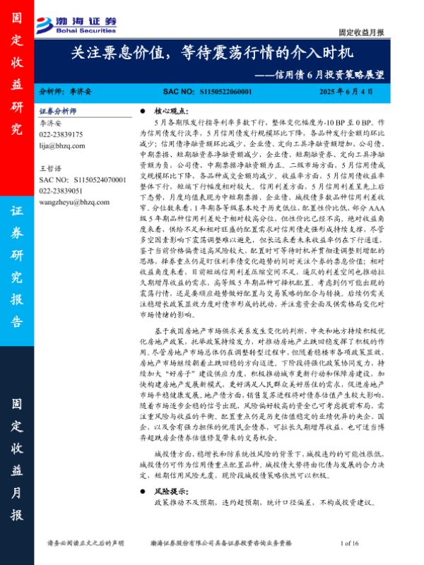 【渤海证券】【20250604】信用债6月投资策略展望-16页 证券期货研究报告