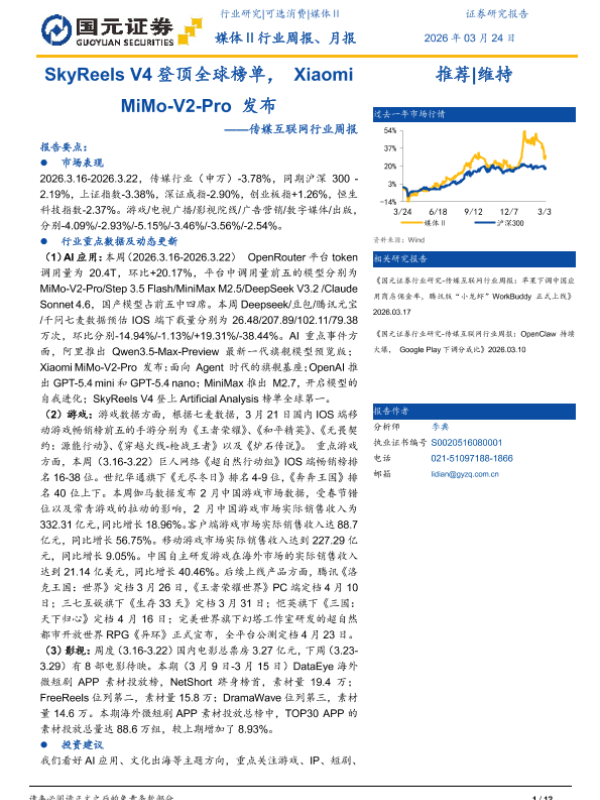 【国元证券】【202603】SkyReels V4登顶全球榜单,Xiaomi MiMo-V2-Pro发布-12页 证券期货研究报告