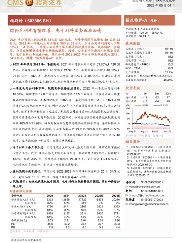 【海通证券】【20220504】综合毛利率有望改善,电子材料业务正在加速-13页 公司研究