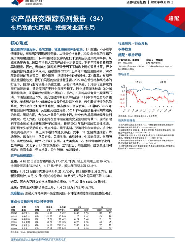 【国信证券】【20220425】20220425-国信证券-农产品研究跟踪系列报告(34):布局畜禽大周期,把握种业新布局-23页 行业研究