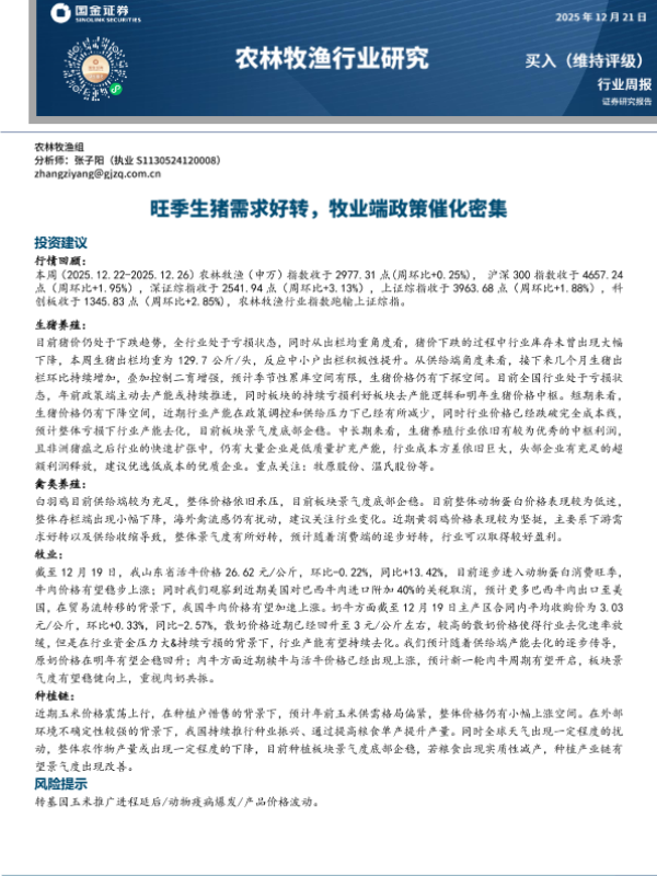【国金证券】【202512】农林牧渔行业研究:旺季生猪需求好转,牧业端政策催化密集-13页 证券期货研究报告