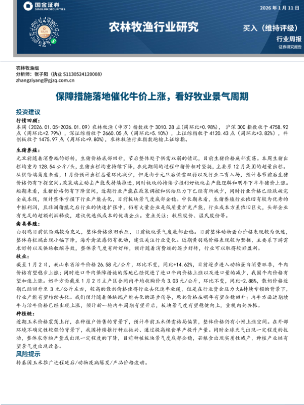 【国金证券】【202601】农林牧渔行业研究:保障措施落地催化牛价上涨,看好牧业景气周期-14页 证券期货研究报告