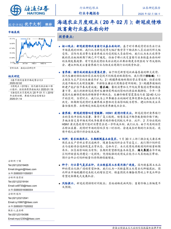 【海通证券】【202002】海通农业月度观点(20年02月):新冠疫情难改畜禽行业基本面向好-19页 行业研究