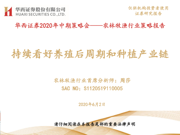 【华西证券】【20200602】20200602-华西证券-农林牧渔行业策略报告:持续看好养殖后周期和种植产业链-29页 行业研究