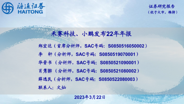 【海通证券】【20230322】禾赛科技、小鹏发布22年年报-10页 财报