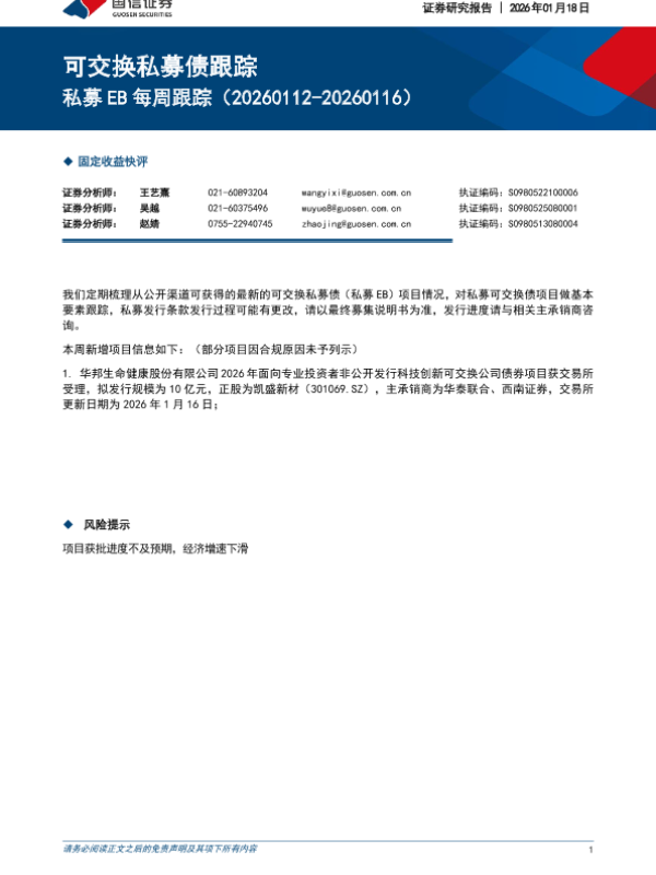 【国信证券】【202601】可交换私募债跟踪-私募 EB每周跟踪-4页 证券期货研究报告
