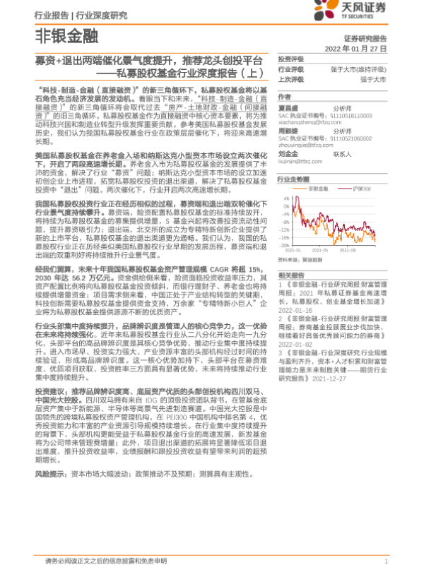 【天风证券】【20220127】私募股权基金行业深度报告(上):募资+退出两端催化景气度提升,推荐龙头创投平台-33页 行业研究