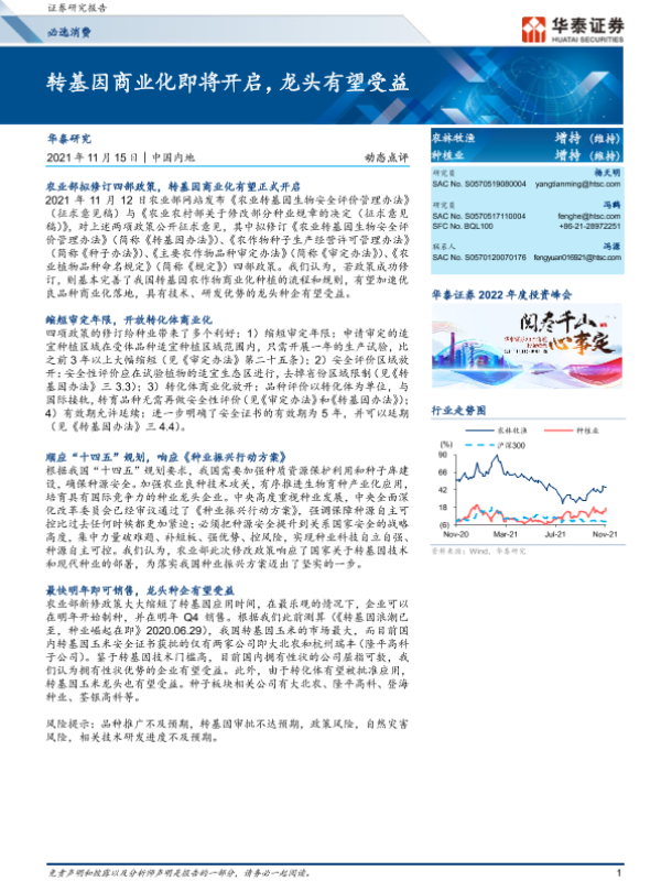 【华泰证券】【20211115】农林牧渔:转基因商业化即将开启,龙头有望受益-12页 行业研究