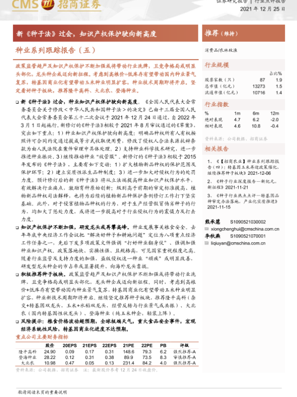 【国泰君安证券】【20211226】20211226-国泰君安-农业行业事件快评:新种子法落地,种业知识产权保护推向新高度-5页 行业研究
