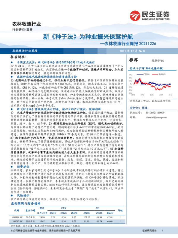 【民生证券】【20211226】20211226-民生证券-农林牧渔行业周报:新《种子法》为种业振兴保驾护航-15页 行业研究