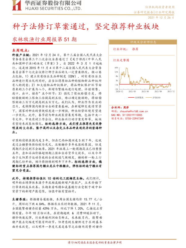 【华西证券】【20211226】20211226-华西证券-农林牧渔行业周报第51期:种子法修订草案通过,坚定推荐种业板块-24页 行业研究