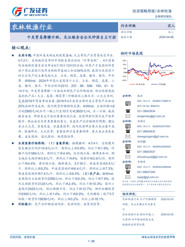 【广发证券】【20250406】农林牧渔行业:中美贸易摩擦升级,关注粮食安全及种源自主可控-22页 证券期货研究报告