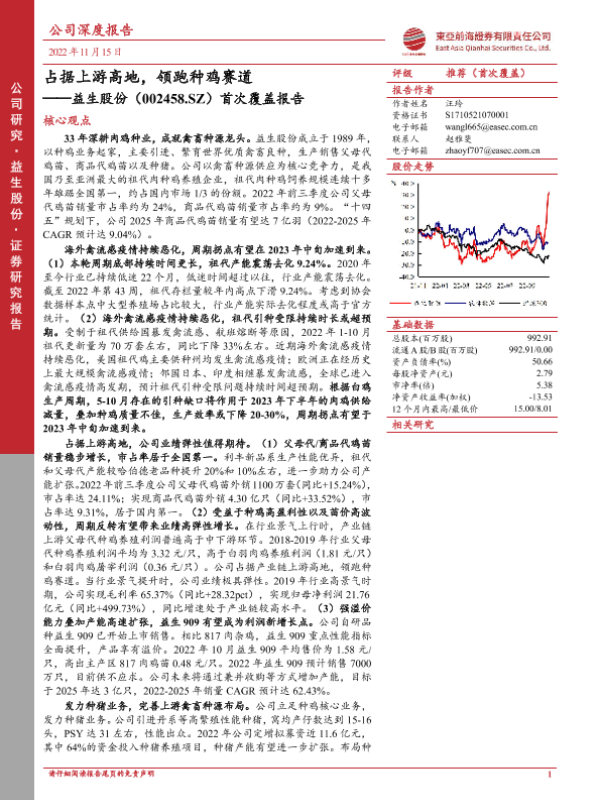【东亚前海证券】【20221115】占据上游高地,领跑种鸡赛道——益生股份(002458.SZ)首次覆盖报告-37页 行业研究