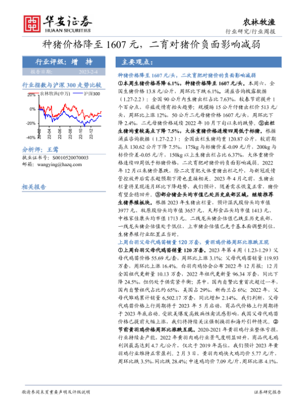 【华安证券】【20230204】20230204-华安证券-农林牧渔行业周报:种猪价格降至1607元,二育对猪价负面影响减弱-40页 行业研究