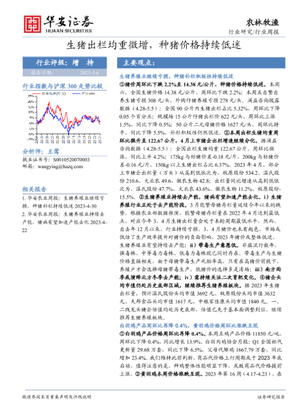 【华安证券】【20230506】20230506-华安证券-农林牧渔行业周报:生猪出栏均重微增,种猪价格持续低迷-42页 行业研究