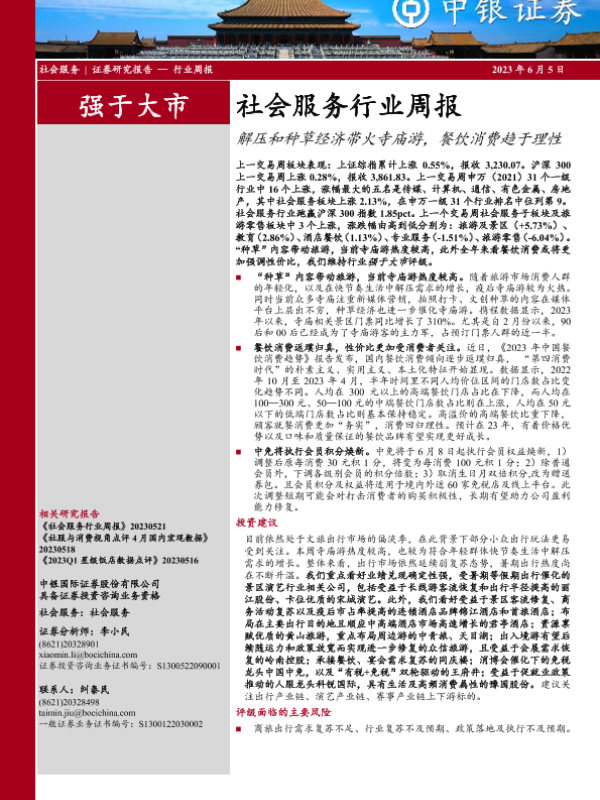 【中银证券】【20230605】社会服务行业周报:解压和种草经济带火寺庙游,餐饮消费趋于理性-20页 行业研究