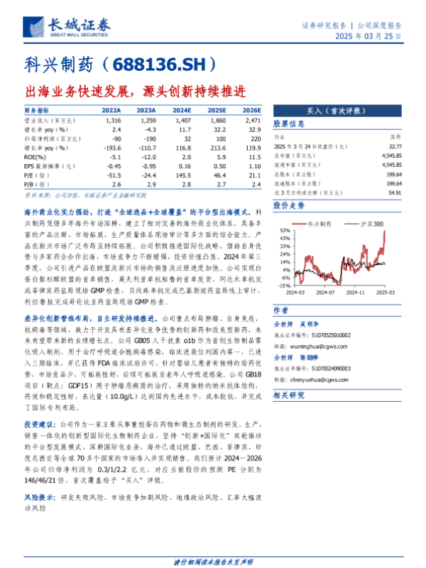 【长城证券】【20250325】科兴制药-688136.SH-出海业务快速发展,源头创新持续推进-38页 行业研究