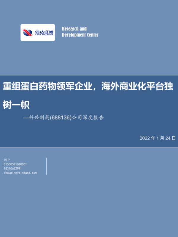【信达证券】【20220124】20220124-信达证券-科兴制药-688136.SH-公司深度报告:重组蛋白药物领军企业,海外商业化平台独树一帜-22页 行业研究
