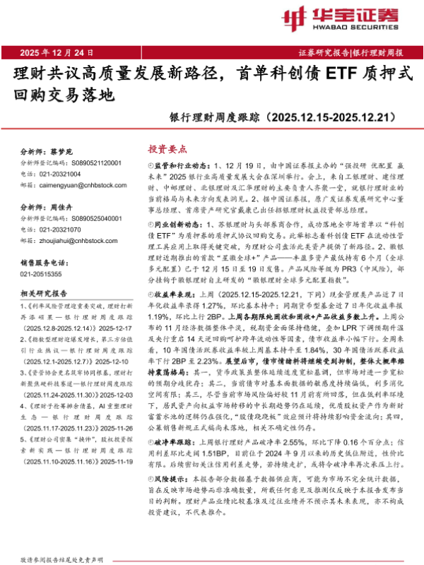 【华宝证券】【202512】理财共议高质量发展新路径,首单科创债ETF质押式回购交易落地-8页 证券期货研究报告