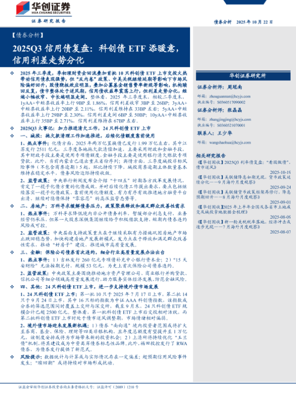【华创证券】【202510】2025Q3信用债复盘:科创债ETF添暖意,信用利差走势分化-23页 证券期货研究报告