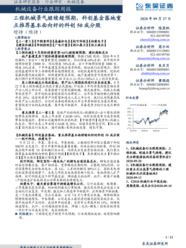 【东吴证券】【20200927】20200927-东吴证券-机械设备行业跟踪周报:工程机械景气继续超预期,科创基金落地重点推荐基本面向好的科创50成分股-13页 行业研究