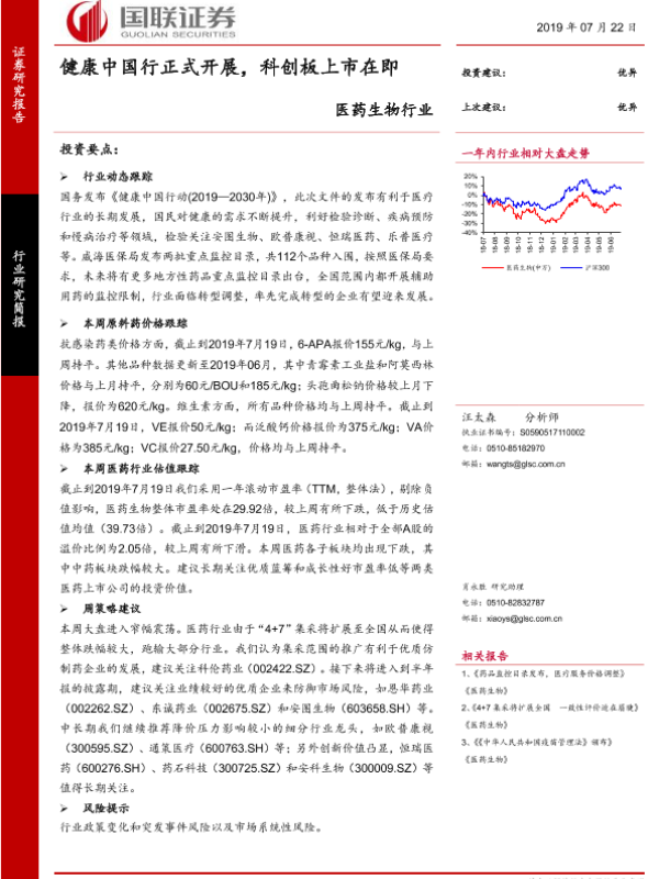 【国联证券】【20190722】医药生物行业:健康中国行正式开展,科创板上市在即-17页 行业研究