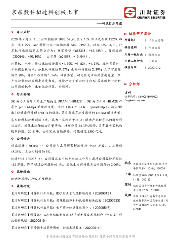 【川财证券】【20200702】科技行业日报:京东数科拟赴科创板上市-3页 证券期货研究报告