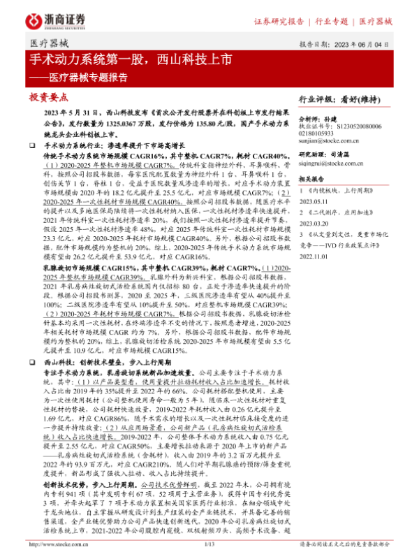 【浙商证券】【20230604】手术动力系统第一股,西山科技上市-13页 行业研究