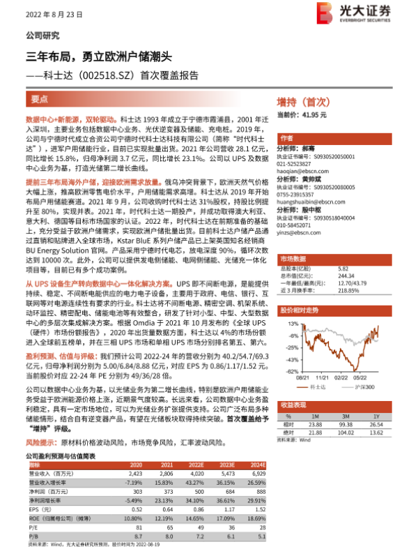 【光大证券】【20220823】20220823-光大证券-科士达-002518.SZ-首次覆盖报告:三年布局,勇立欧洲户储潮头-24页 行业研究