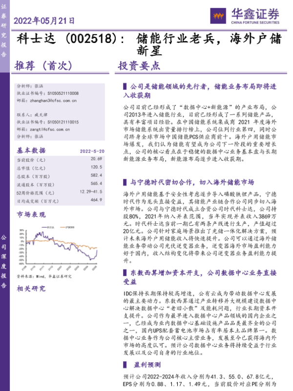 【华鑫证券】【20220521】科士达(002518) 储能行业老兵,海外户储新星-19页 行业研究