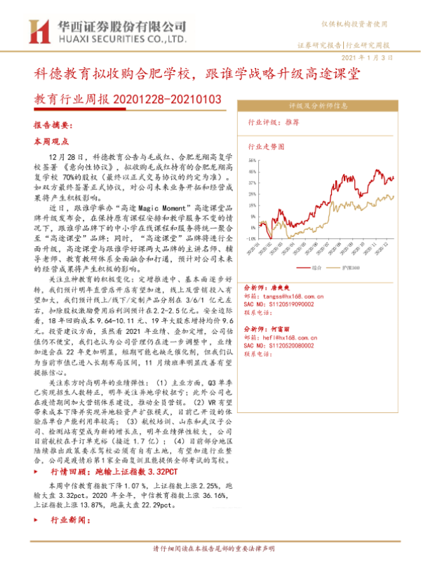 【华西证券】【20210103】20210103-华西证券-教育行业周报:科德教育拟收购合肥学校,跟谁学战略升级高途课堂-17页 行业研究