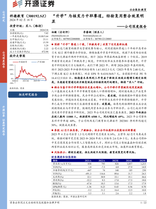 【开源证券】【20240218】20240218-开源证券-科德教育-300192.SZ-公司深度报告:“升学”为核发力中职赛道,经验复用整合效果明显-22页 行业研究