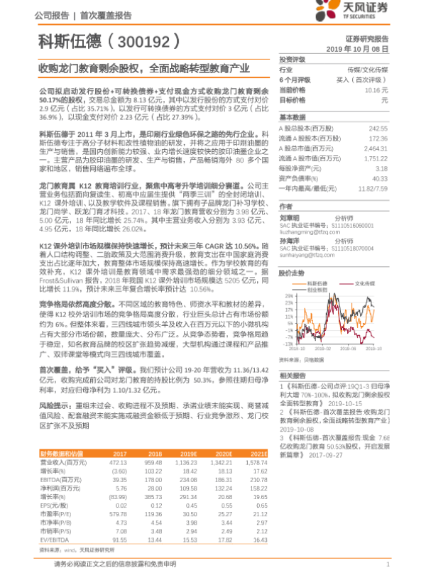 【天风证券】【20191008】科德教育-300192.SZ-收购龙门教育剩余股权,全面战略转型教育产业-22页 行业研究