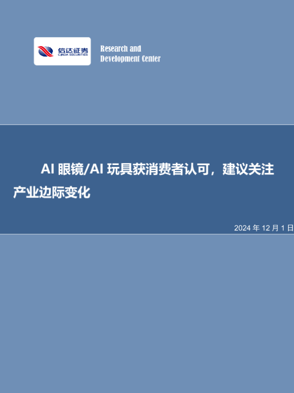 【信达证券】【20241201】AI眼镜 AI玩具获消费者认可,建议关注产业边际变化-11页 行业研究