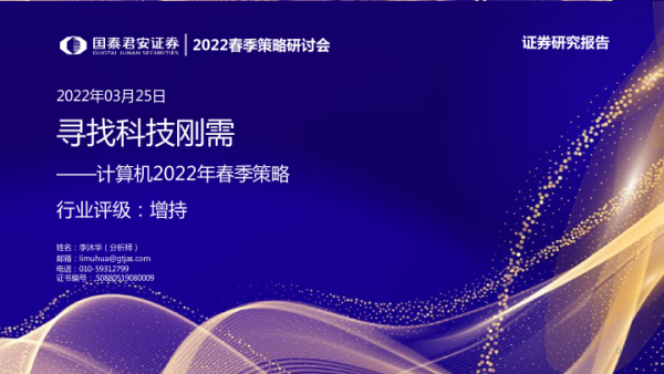 【国泰君安证券】【20220325】计算机2022年春季策略:寻找科技刚需-35页 行业研究