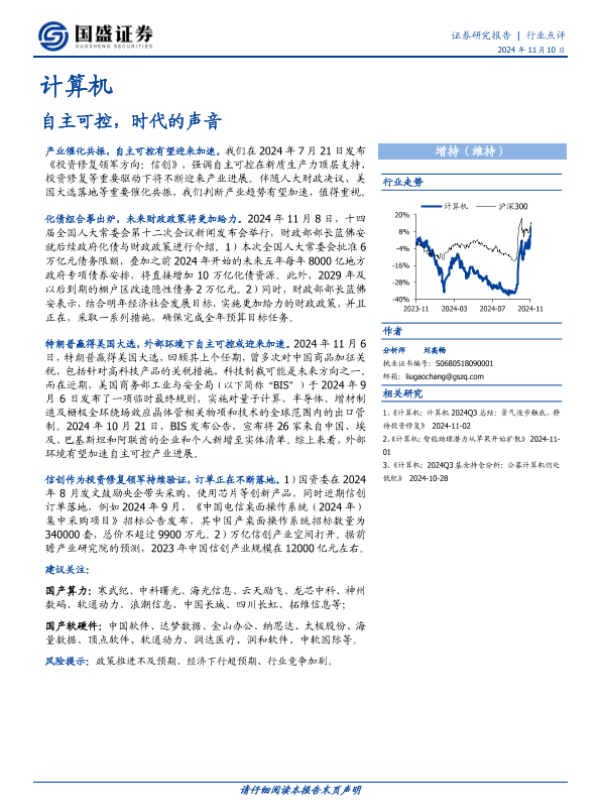 【国盛证券】【20241110】计算机:自主可控,时代的声音-10页 行业研究
