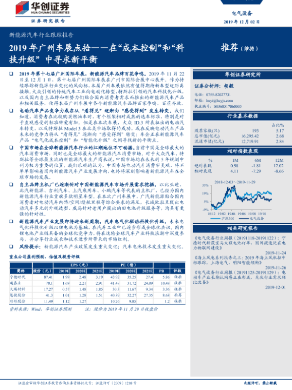 【华创证券】【20191202】2019年广州车展点拾——在“成本控制”和“科技升级”中寻求新平衡-15页 行业研究