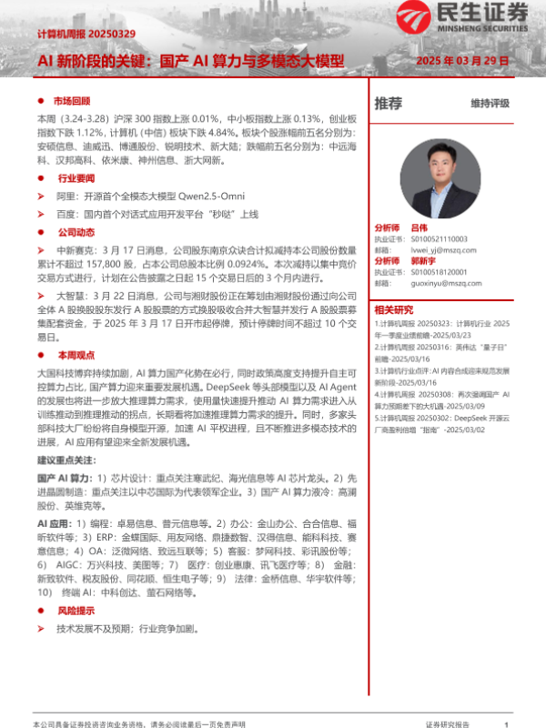 【民生证券】【20250329】计算机周报:AI新阶段的关键:国产AI算力与多模态大模型-17页 行业研究